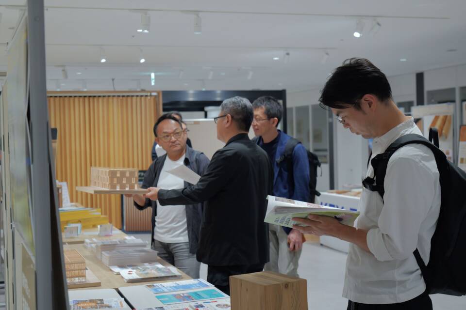 昨年同様、都市木造に携わっている企業さん方にはご協力をいただき、会場では木質建材等製品の展示を行いました。